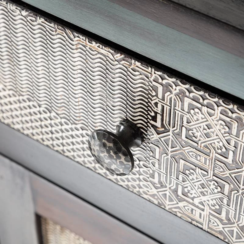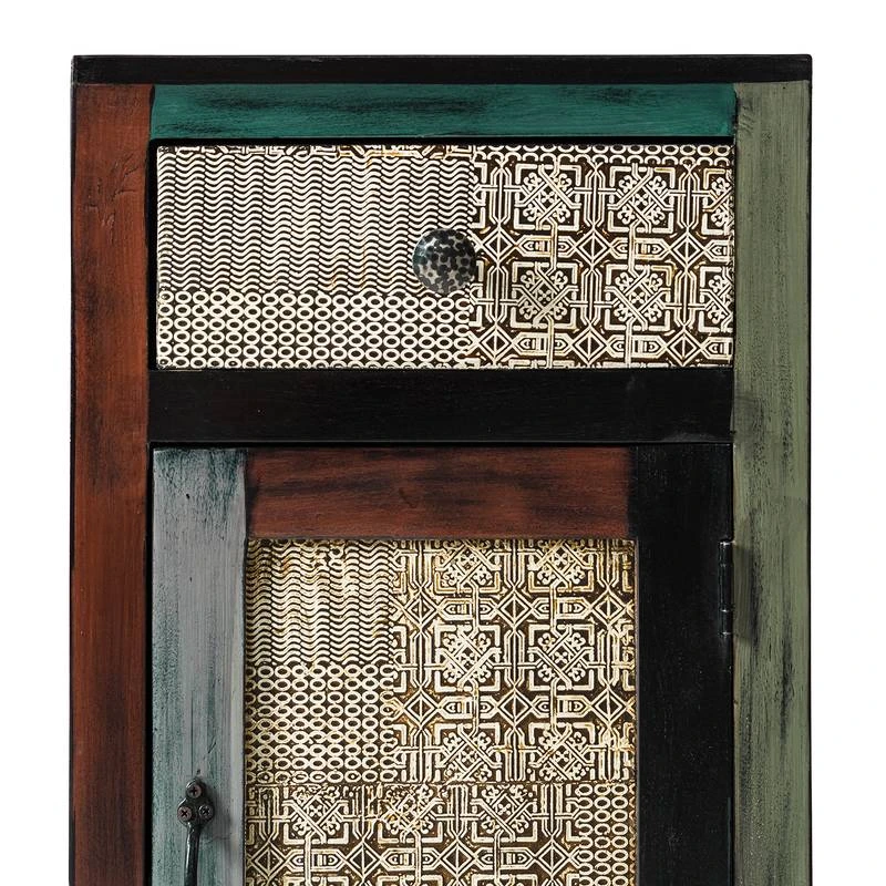 - Eléments de la façade : panneau MDF (panneau de fibres de bois de densité moyenne) avec éléments décoratifs métalliques