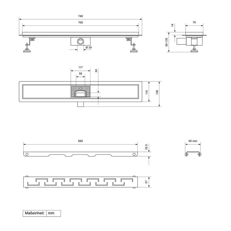- Contenu de la livraison : 1 x caniveau de douche, y compris pieds à visser, réducteur et instructions de montage