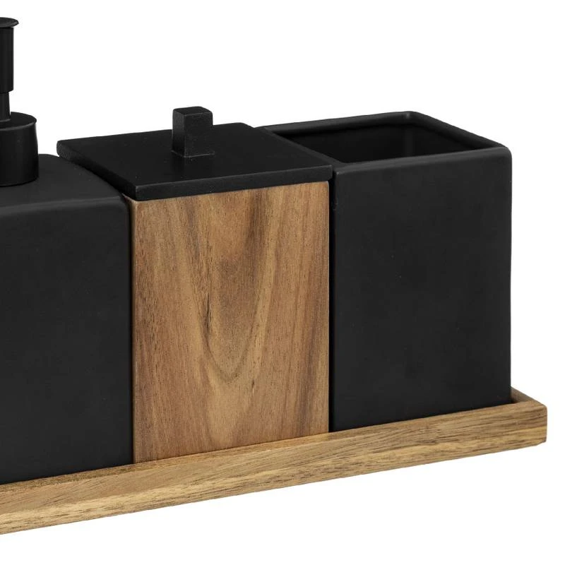 - Contenu de la livraison : Set de 3 accessoires salle de bain en acacia L. 19.6 x P. 10.5 x H. 27.4 cm Noir