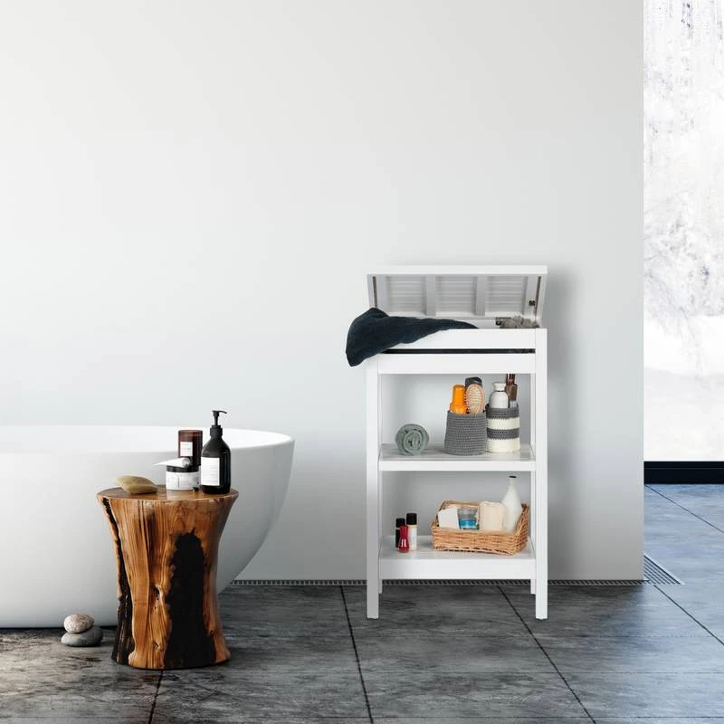 - 1 x Etagère de salle de bain en bambou blanc en pièces détachées