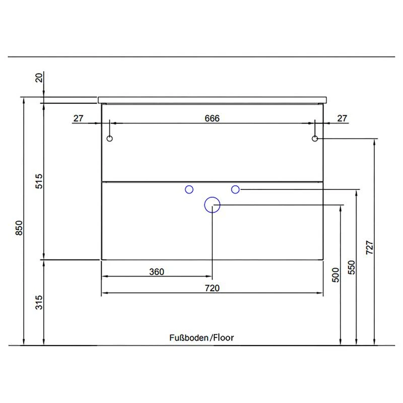 - Meuble sous lavabo (LxHxP) : 72 x 51,3 x 44 cm