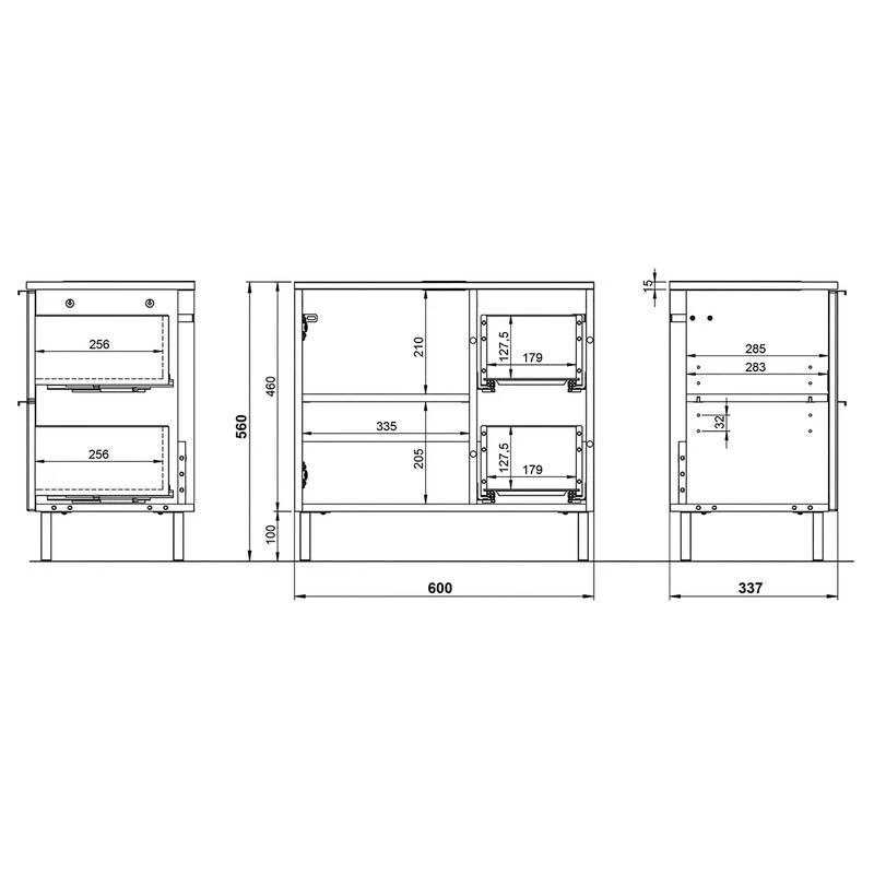 - Dimensions intérieures du tiroir : 17,9 x 12,8 x 25,6 cm chaque