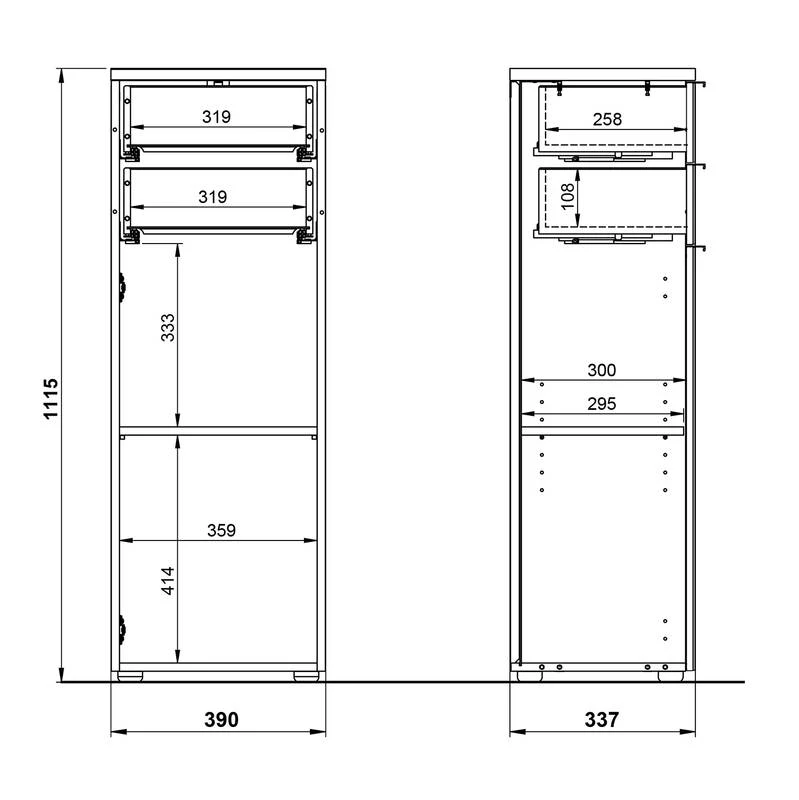 • – Tiroirs : 31,9 x 10,8 x 25,8 cm chaque