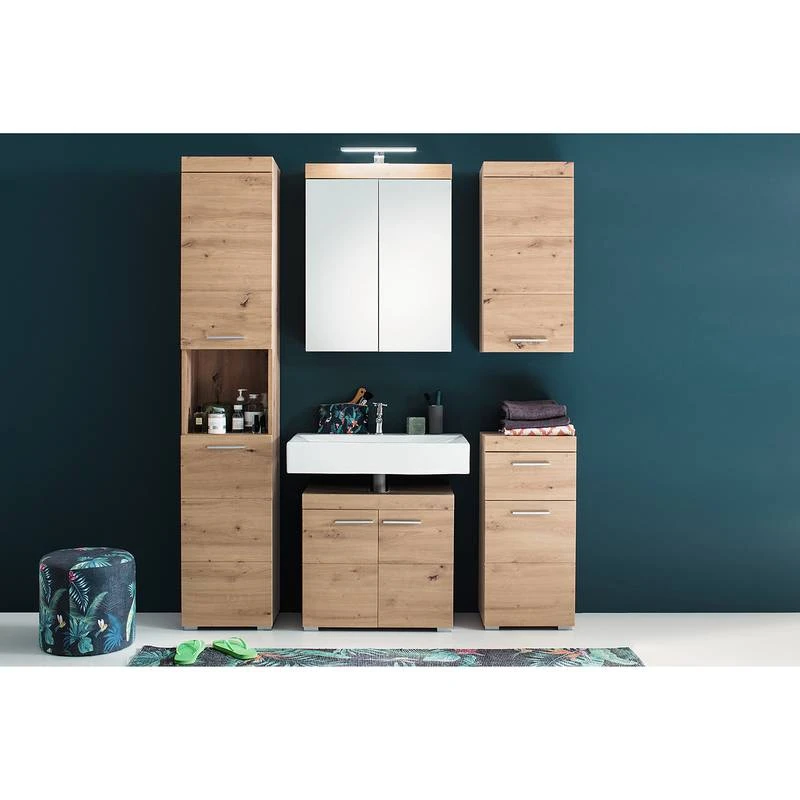 - Contenu de la livraison : 1 armoire de toilette, 1 meuble sous lavabo, sans éclairage ni accessoires