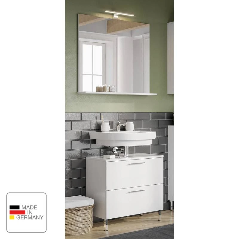 - Contenu de la livraison : Ensemble de salle de bain comprenant 1 meuble sous lavabo et 1 miroir avec éclairage
