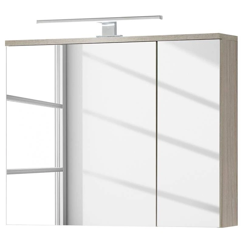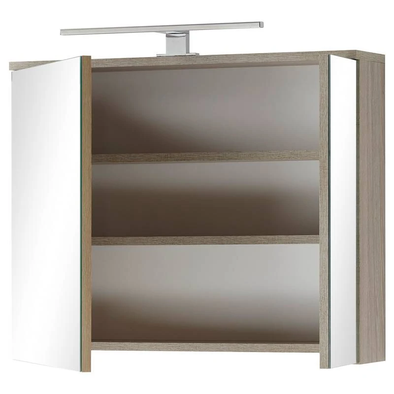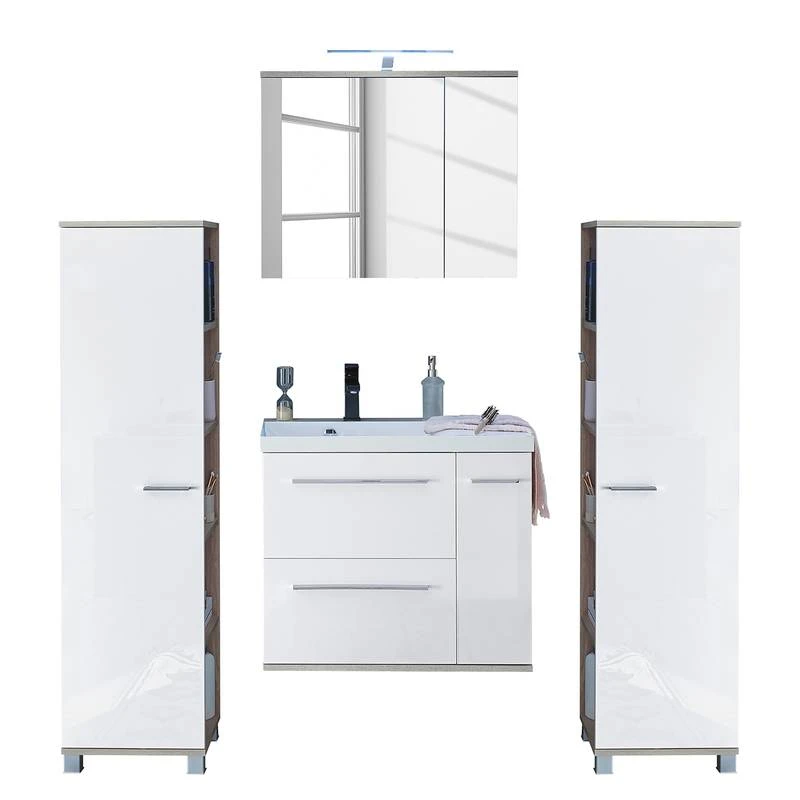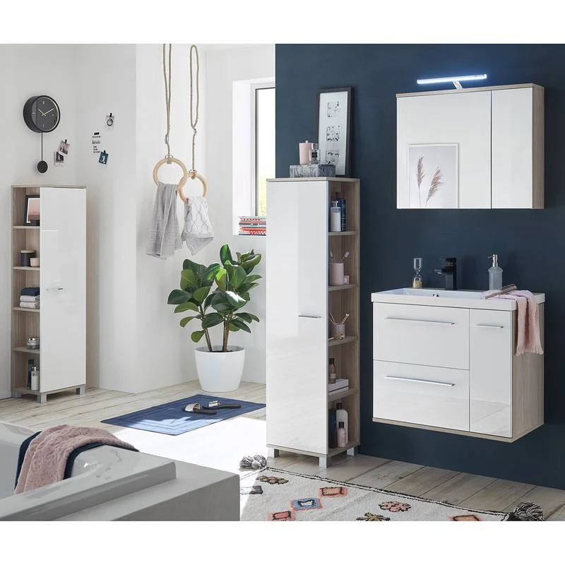 - Salle de bain comprenant 1 meuble avec vasque en fonte minérale, 2 colonnes de salle de bain et 1 armoire de toilette avec éclairage