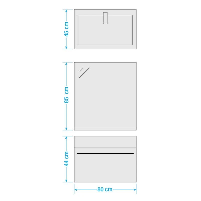 - Meuble avec vasque (L x H x P) : 80 x 43 x 45 cm