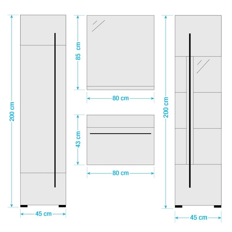 - Colonne de salle de bain (L x H x P) chaque : 45 x 200 x 35 cm