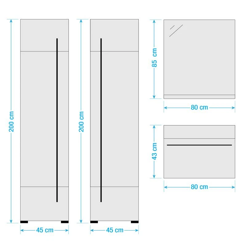 - Colonne de salle de bain (L x H x P) chaque : 45 x 200 x 35 cm