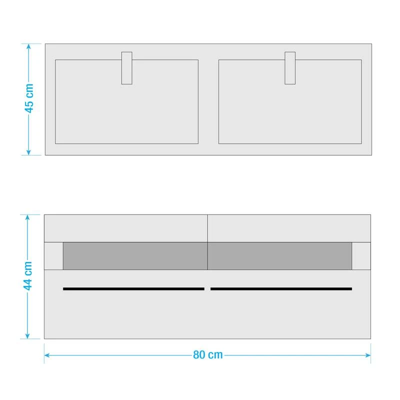 - Meuble avec vasque double (L x H x P) : 120 x 43 x 45 cm