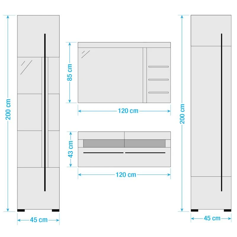 - Colonne de salle de bain (L x H x P) chaque : 45 x 200 x 35 cm