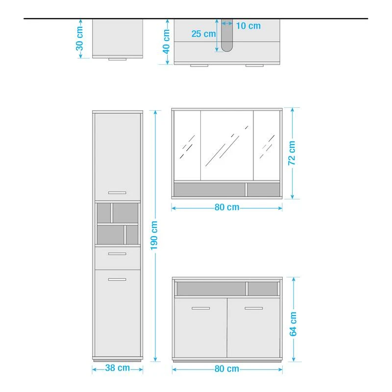 - Armoire de toilette (LxHxP) : 80 x 72 x 20 cm