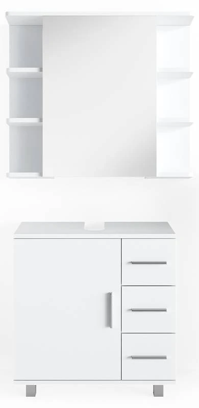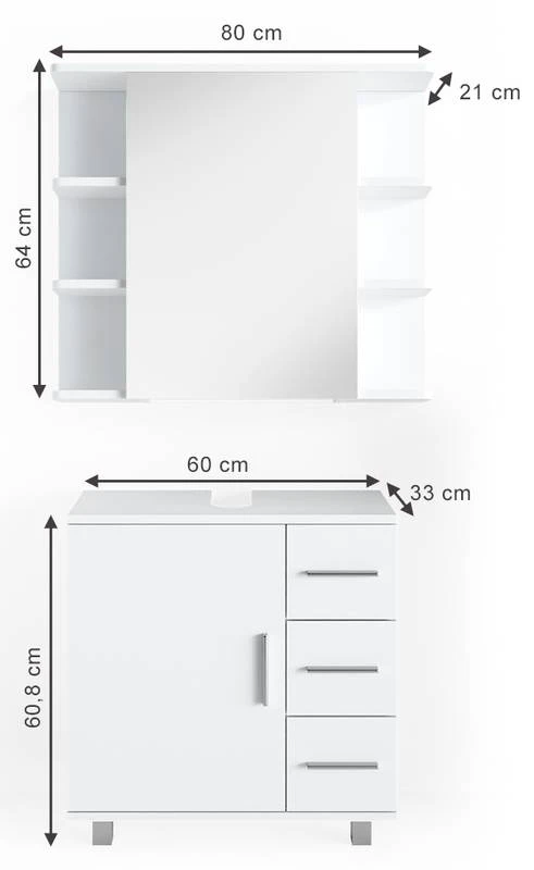 - Contenu de la livraison : • 1x armoire de toilette • 1x meuble sous-vasque Décoration non incluse