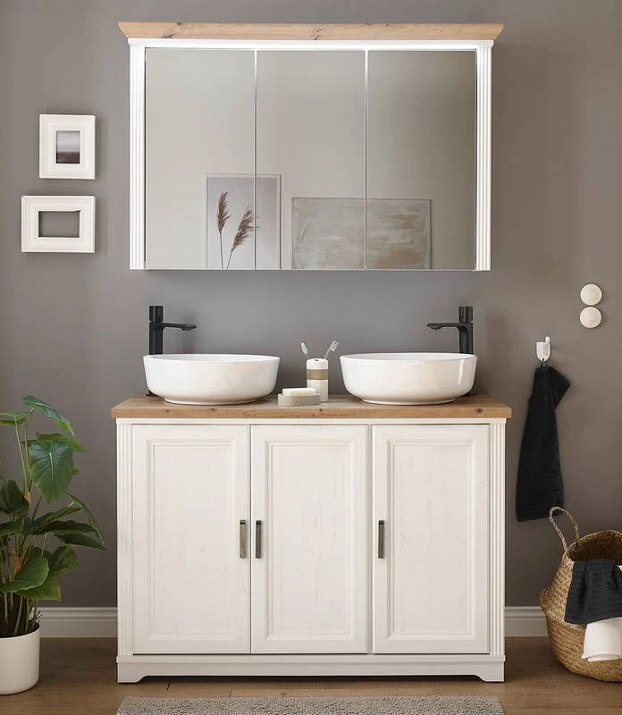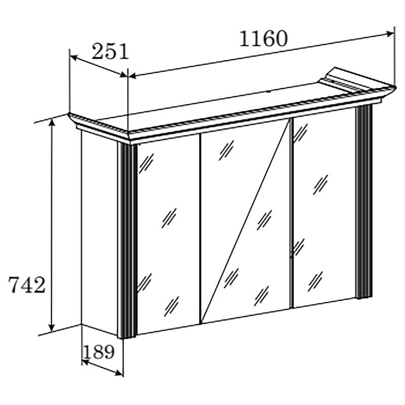 - Armoire de toilette (L x H x P) : 116 x 74 x 25 cm