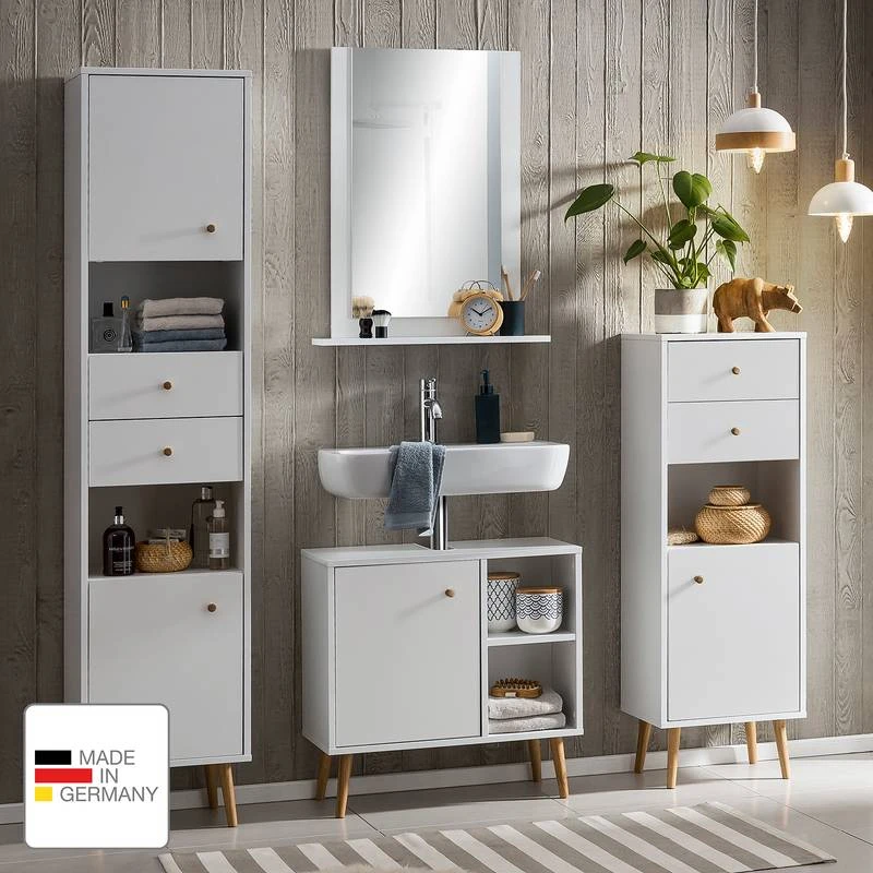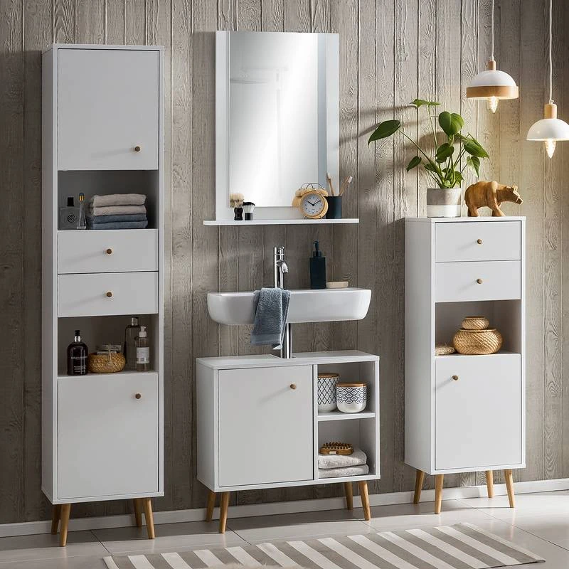 - Contenu de la livraison : Ensemble comprenant 1 colonne de salle de bain, 1 meuble sous lavabo, 1 armoire de salle de bain et un miroir
