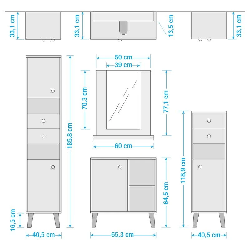- Colonne de salle de bain (LxHxP) : 40,5 x 185,8 x 33,1 cm