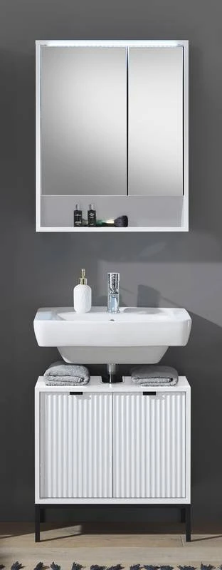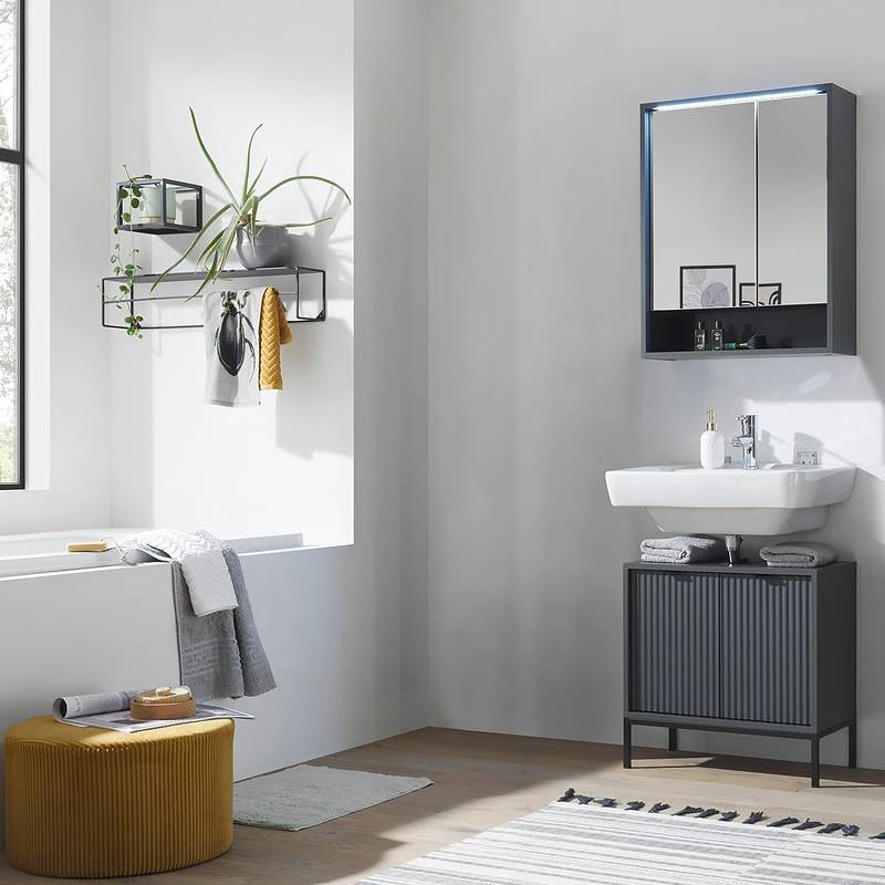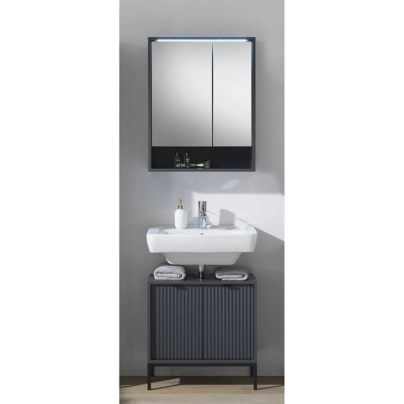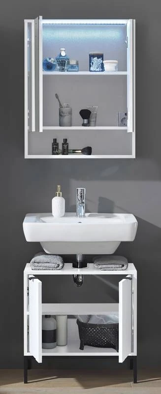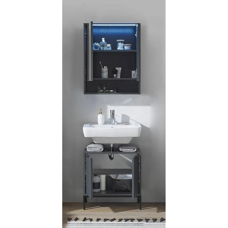 - Ensemble de salle de bain comprenant 1 meuble sous lavabo et 1 armoire de toilette avec éclairage LED inclus