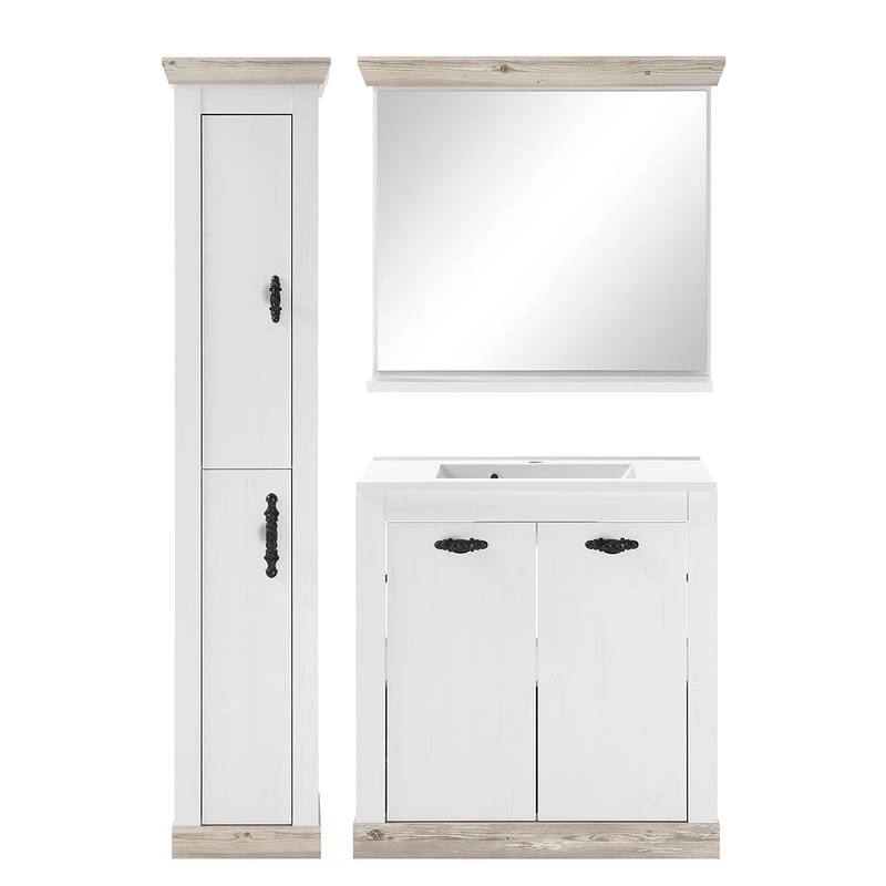 - Contenu de la livraison : Ensemble de salle de bain comprenant 1 meuble avec vasque en fonte minérale, 1 armoire colonne et 1 miroir