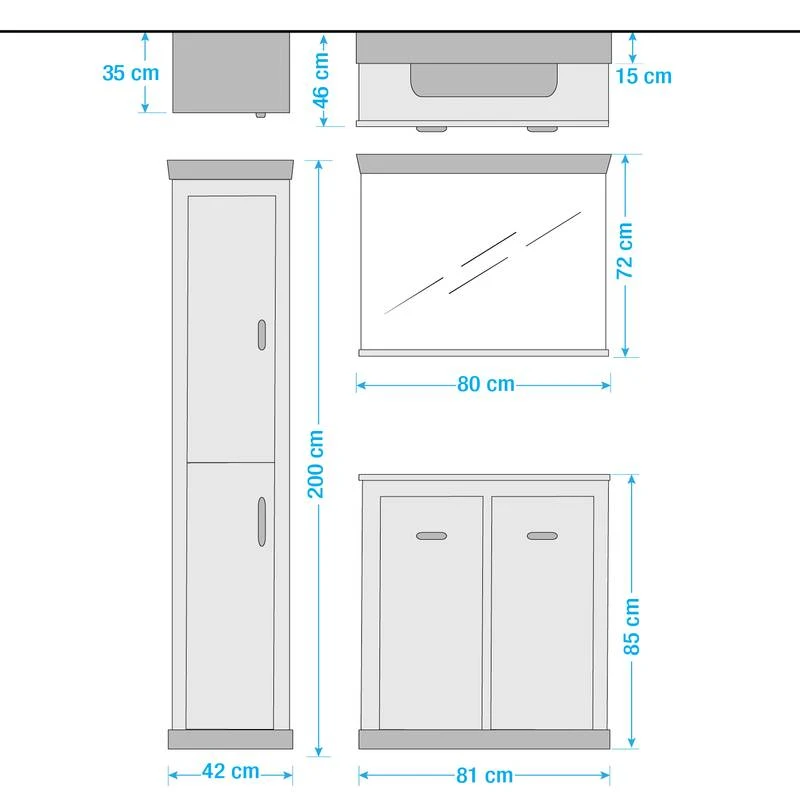- Meuble avec vasque (LxHxP) : 81 x 85 x 46 cm
