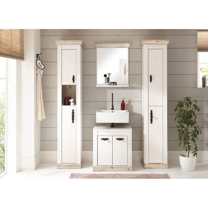 - Contenu de la livraison : Ensemble de salle de bain comprenant 1 meuble sous lavabo, 2 colonnes de salle de bain et 1 miroir