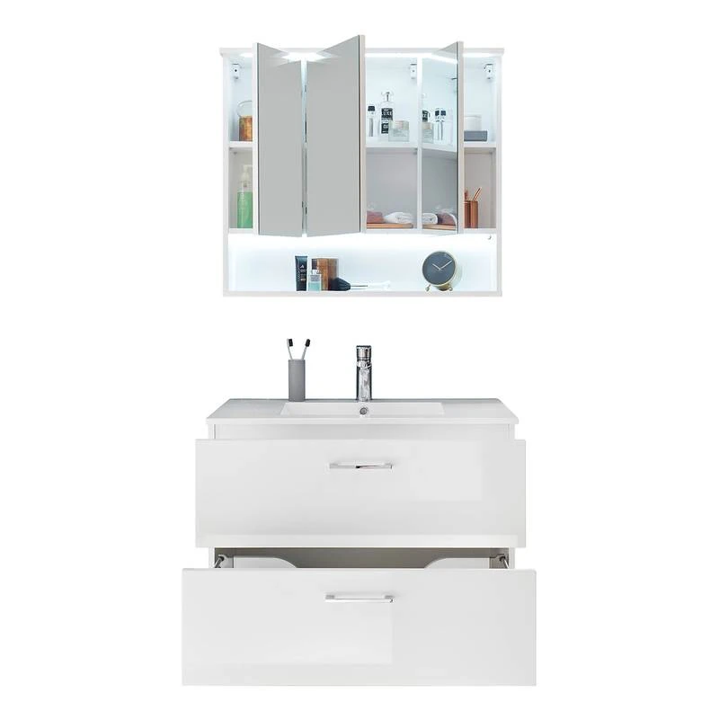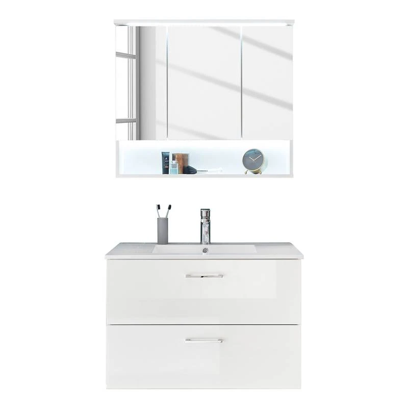 - Contenu de la livraison : Ensemble de salle de bain comprenant 1 meuble avec vasque en fonte minérale et 1 armoire de toilette
