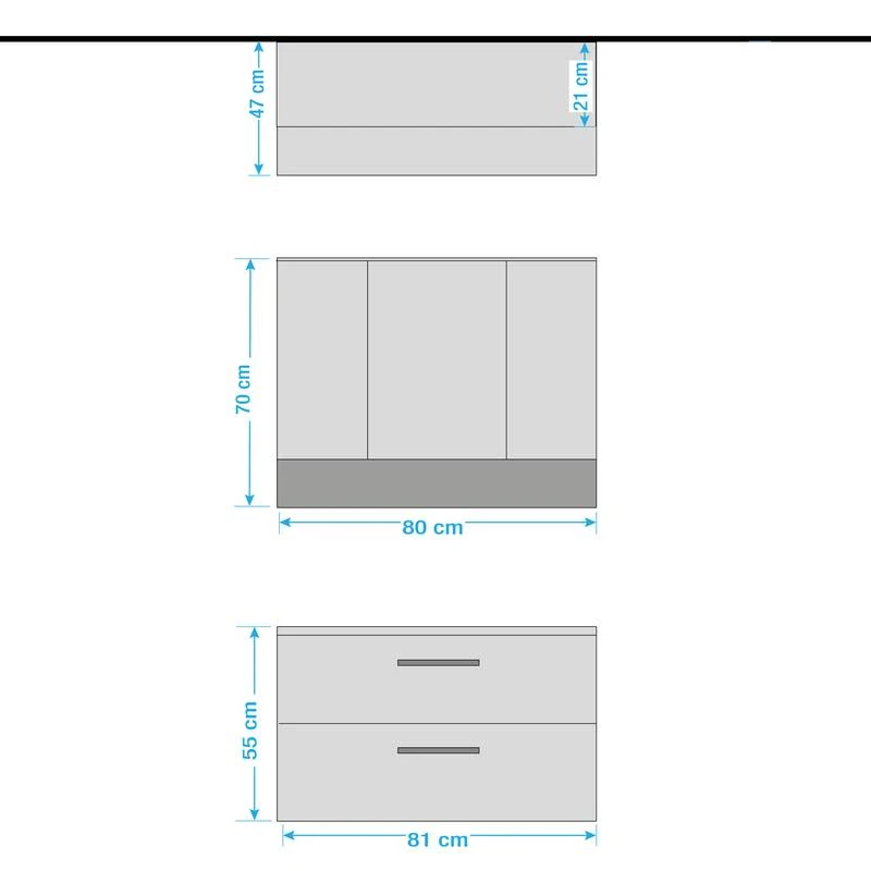- Autres dimensions : Meuble avec vasque : (L x H x P) : 81 x 55 x 47 cm