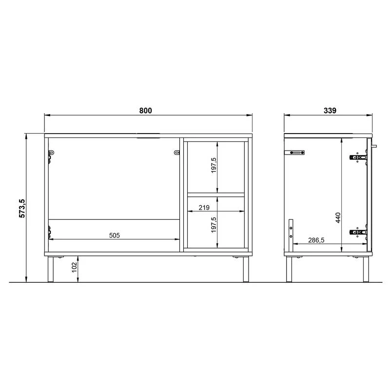- Meuble sous vasque : 80 x 58 x 34 cm