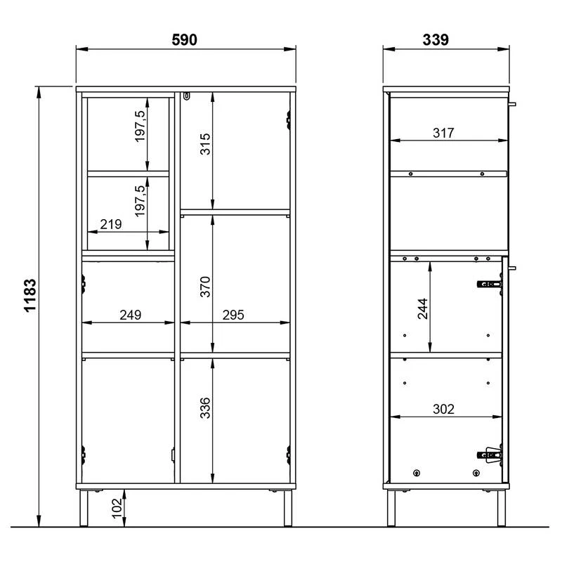- Armoire midi : 59 x 119 x 34 cm