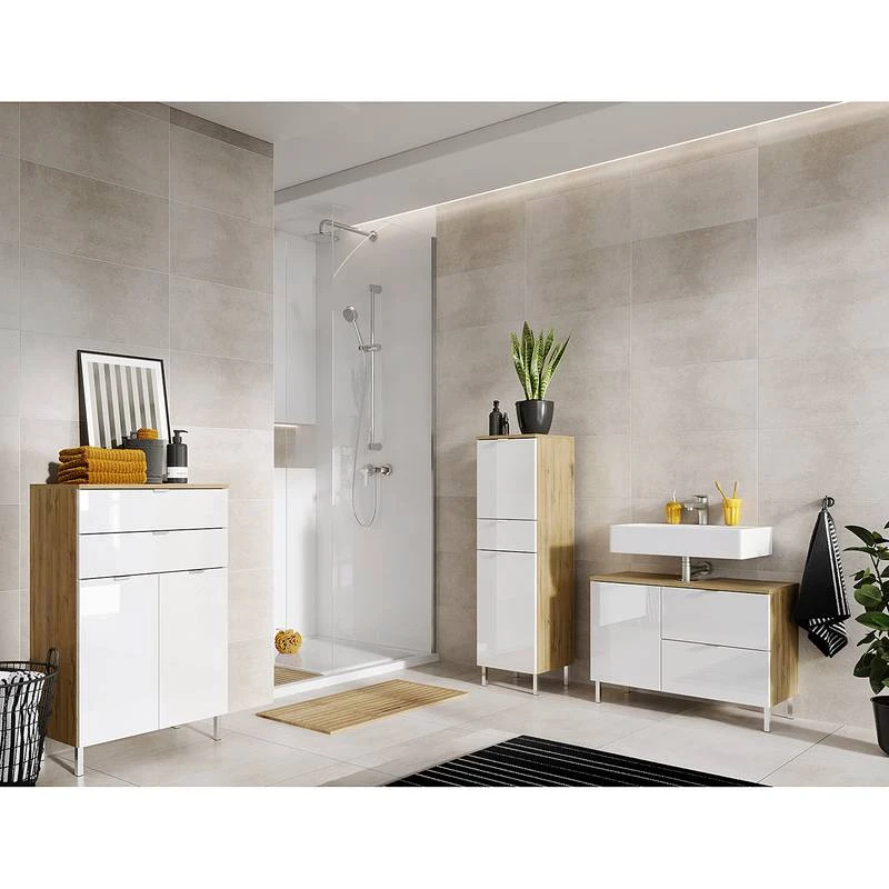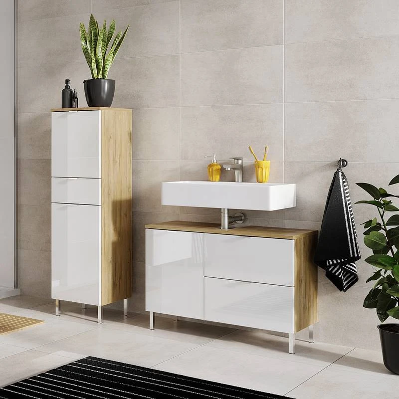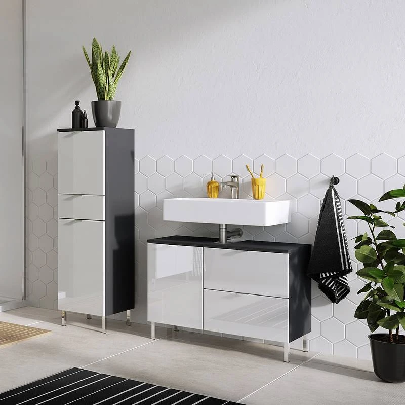 - Contenu de la livraison : Salle de bain composée de 1 meuble sous vasque et 2 colonnes de salle de bain, sans accessoires