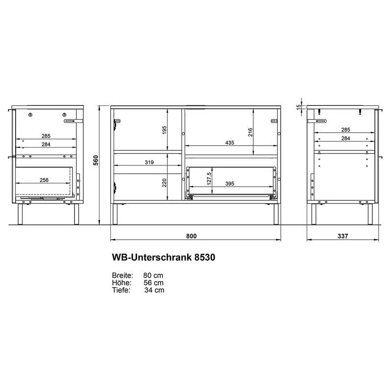 - Meuble sous vasque : 80 x 56 x 34 cm