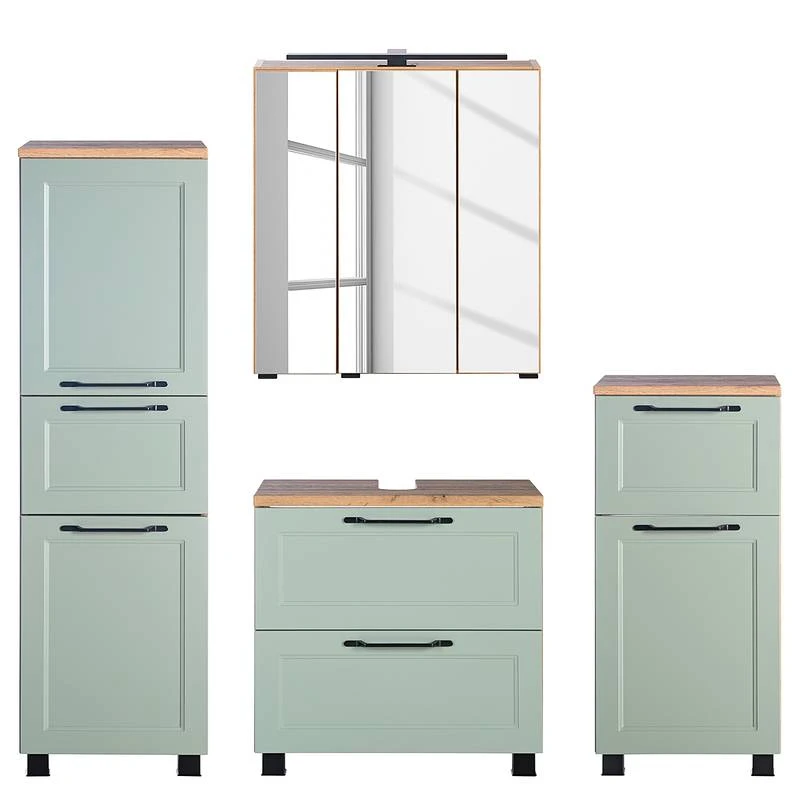 - Ensemble de salle de bain comprenant 1 meuble sous vasque, 1 meuble bas, 1 colonne de salle de bain et 1 armoire de toilette avec éclairage