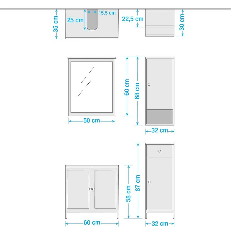 - Meuble bas (L x H x P) : 32 x 87 x 30 cm