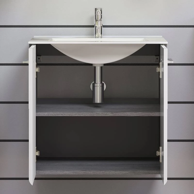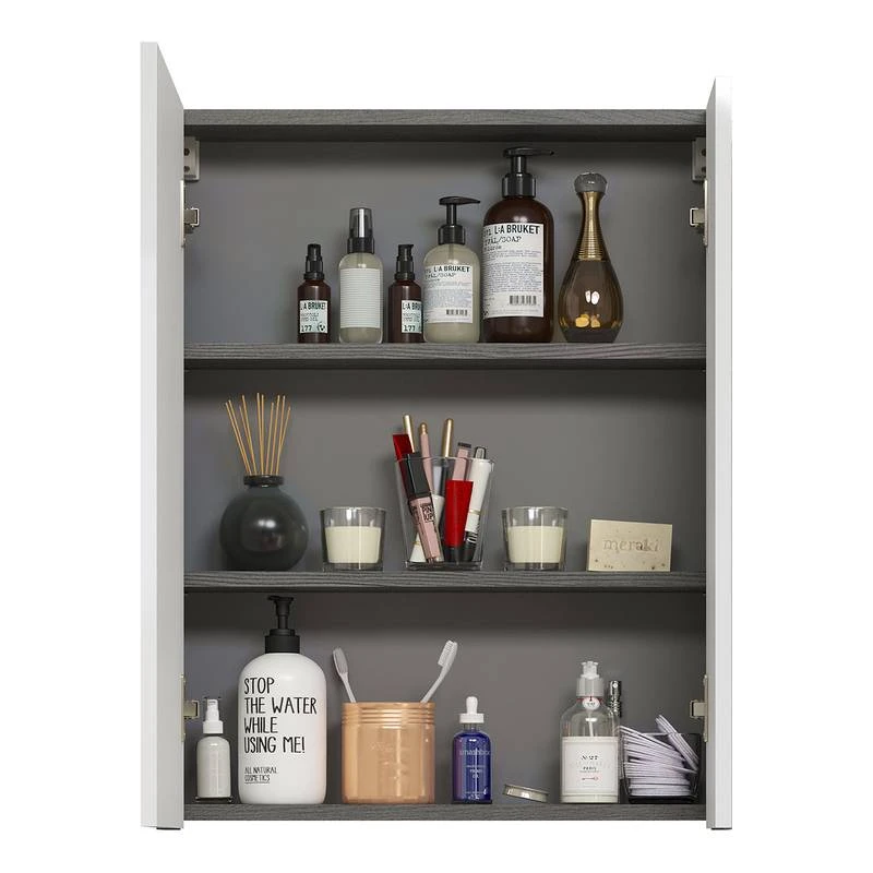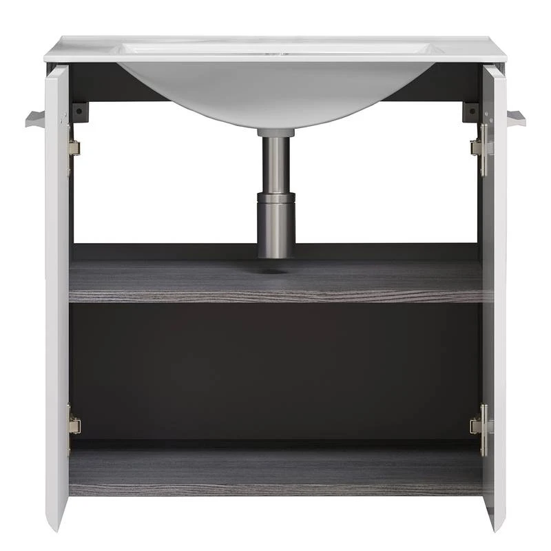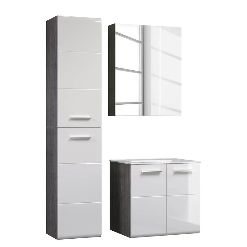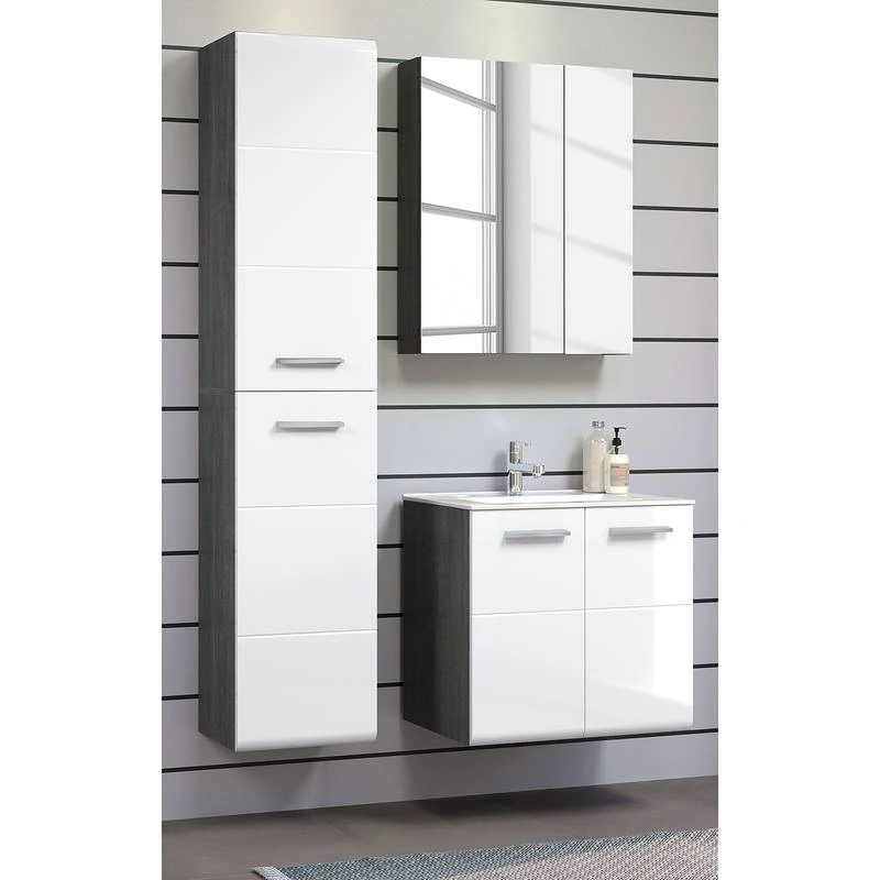 - Contenu de la livraison : Salle de bain comprenant 1 meuble sous vasque, 1 armoire de toilette et 1 colonne de salle de bain, sans accessoires
