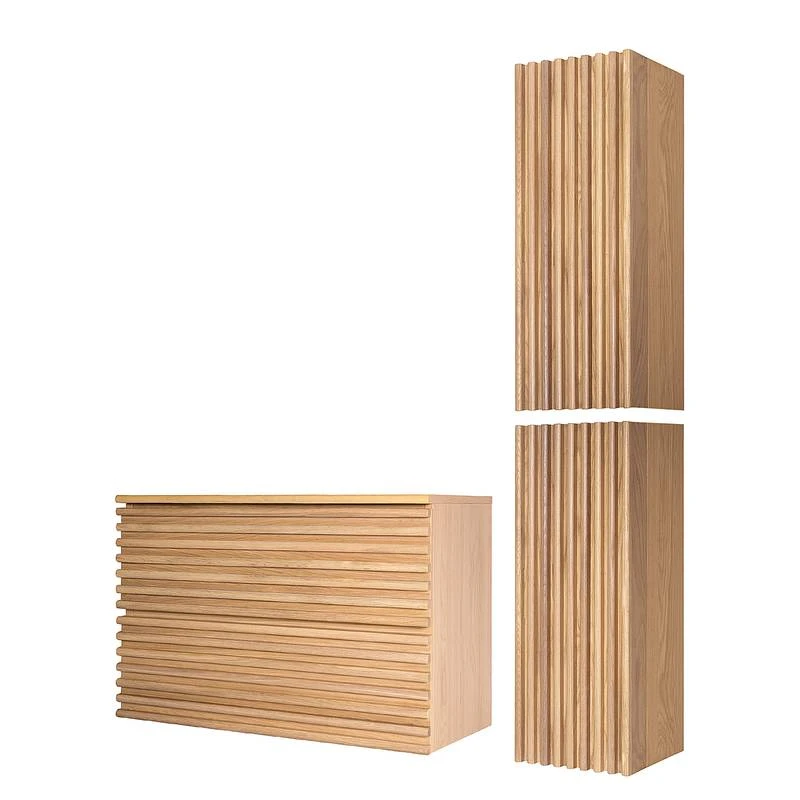 - Contenu de la livraison : Salle de bain comprenant 1 meuble sous vasque sans lavabo et 2 meubles hauts sans accessoires