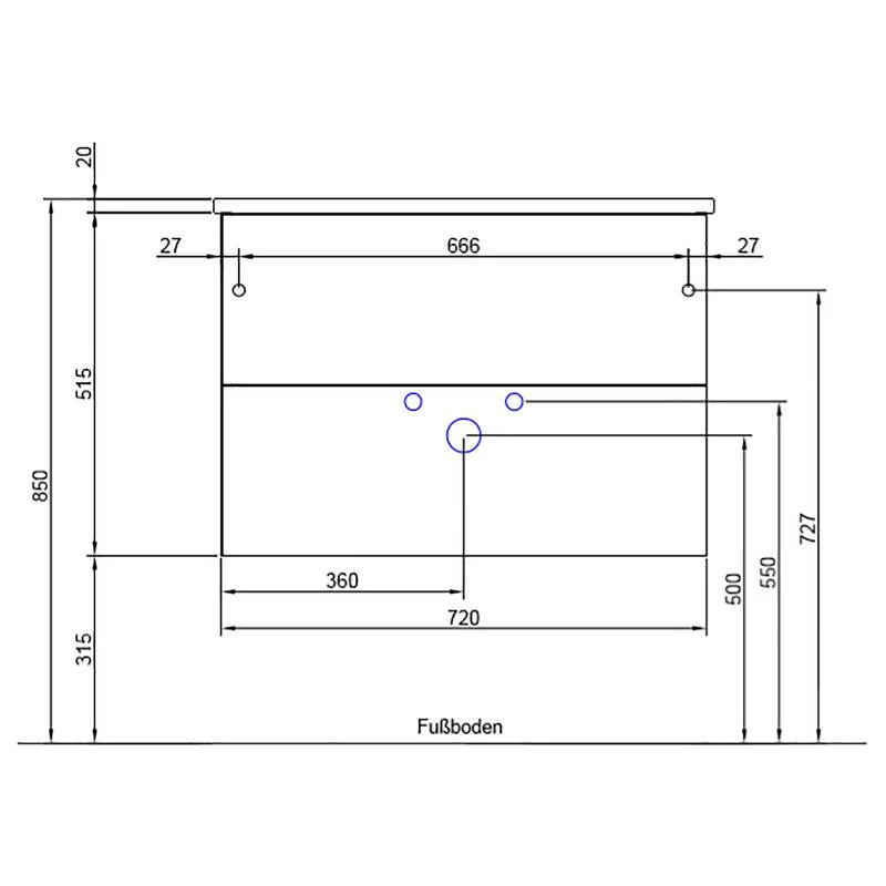 - Meuble avec vasque (LxHxP) : 75 x 53,3 x 45 cm