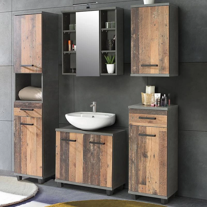 - Contenu de la livraison : Ensemble de salle de bain comprenant 1 colonne de salle de bain, 1 meuble sous lavabo, 1 armoire de toilette, 1 armoire murale et 1 meuble bas