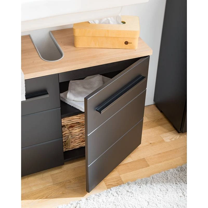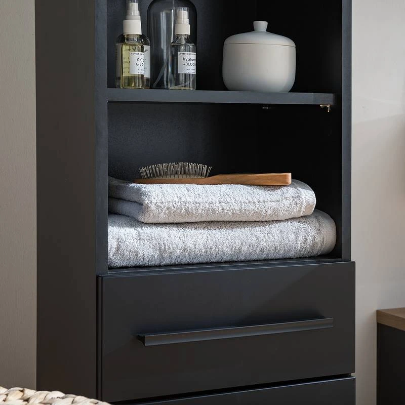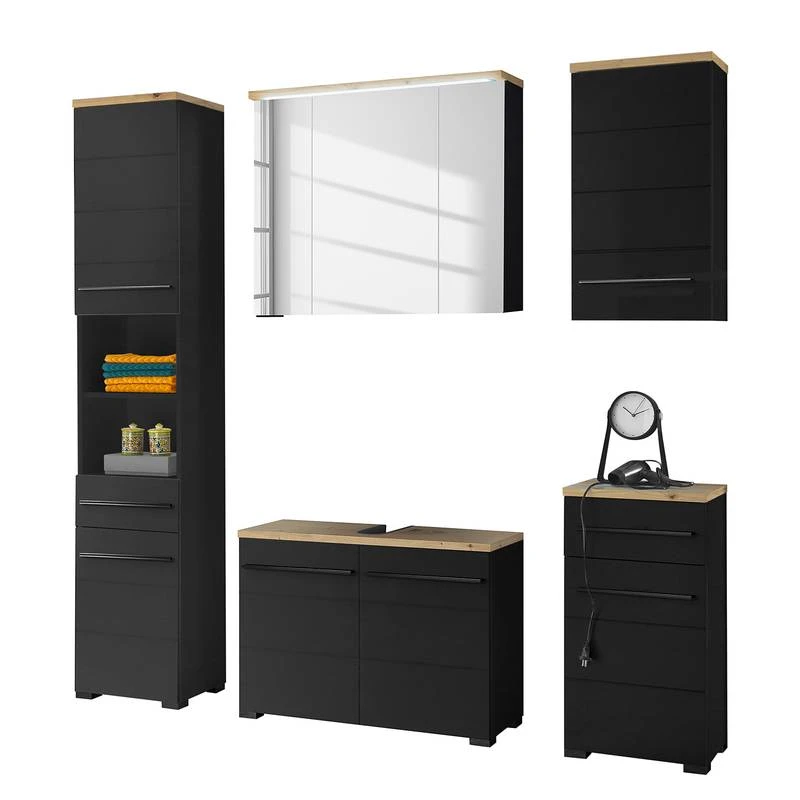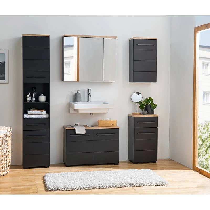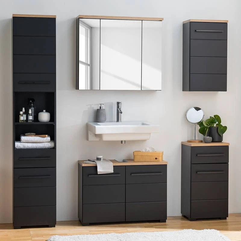- Contenu de la livraison : Ensemble de salle de bain comprenant 1 colonne de salle de bain, 1 armoire de toilette, 1 meuble sous lavabo, 1 meuble haut et 1 meuble bas