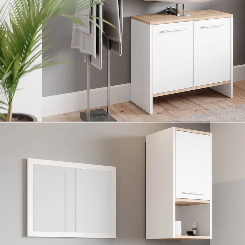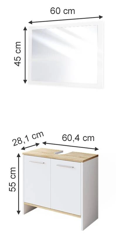 - Contenu de la livraison : • 1x miroir • 1x meuble lavaboDécoration non incluse
