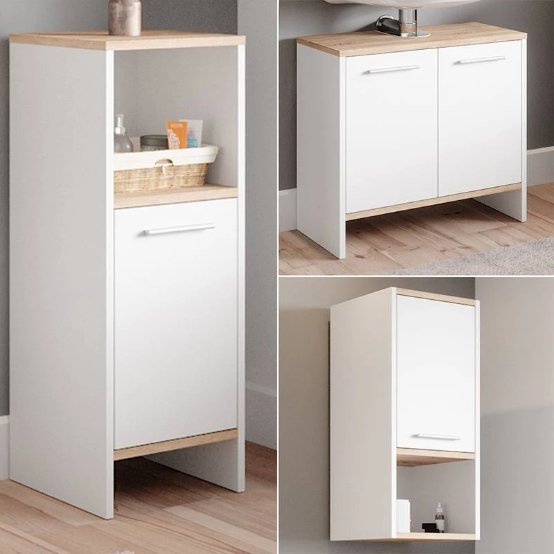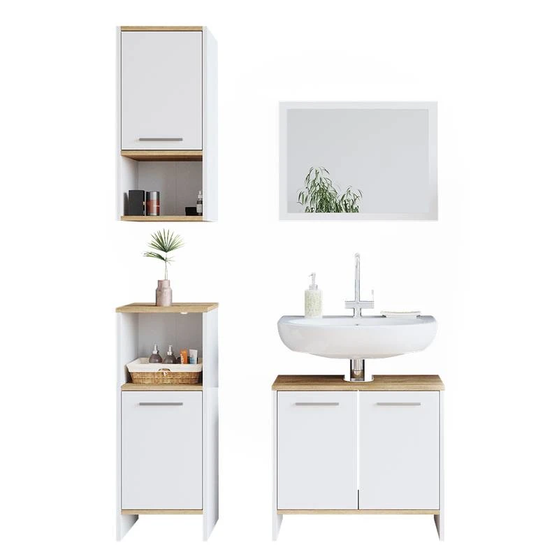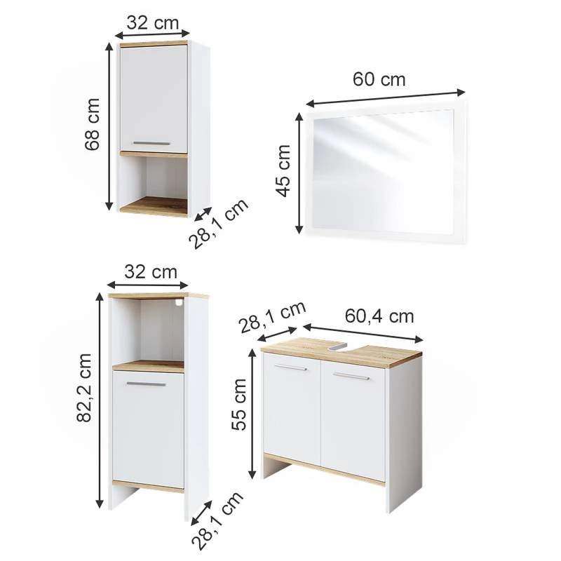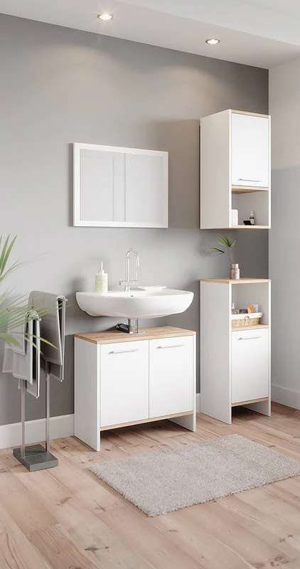 - Contenu de la livraison : • 1x miroir • 1x meuble lavabo• 1x meuble suspenduDécoration non incluse