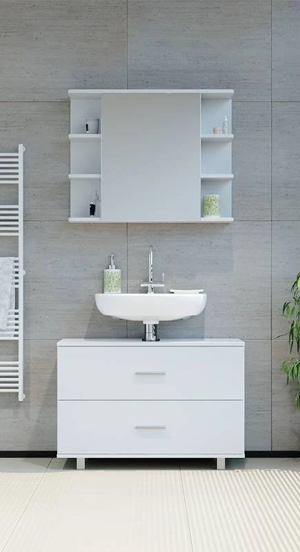 - Contenu de la livraison : • 1x armoire de toilette• 1x meuble sous-vasqueDécoration non incluse