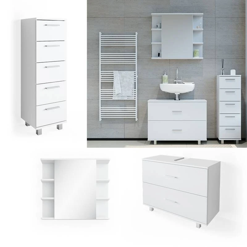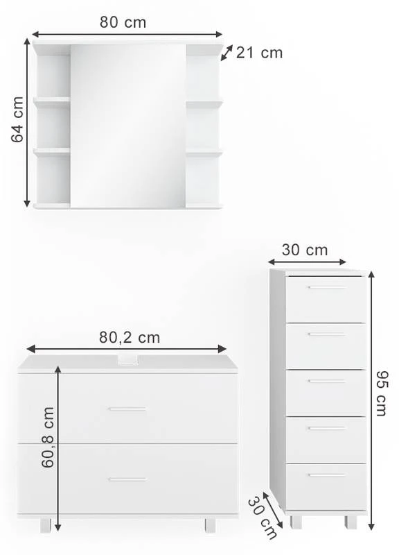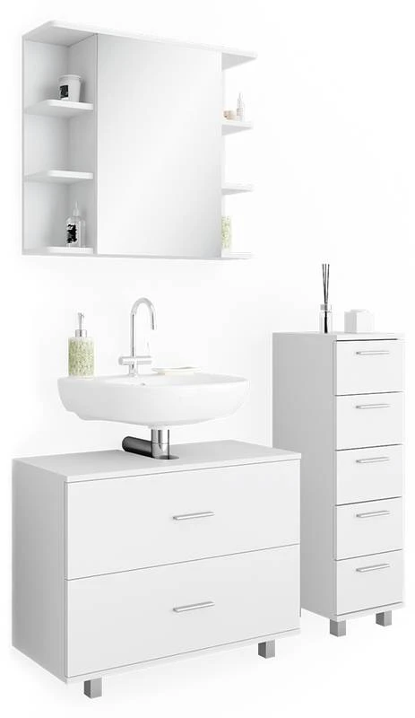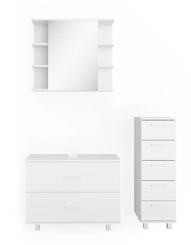 - Contenu de la livraison : • 1x armoire de toilette• 1x meuble sous-vasque• 1x placardDécoration non incluse
