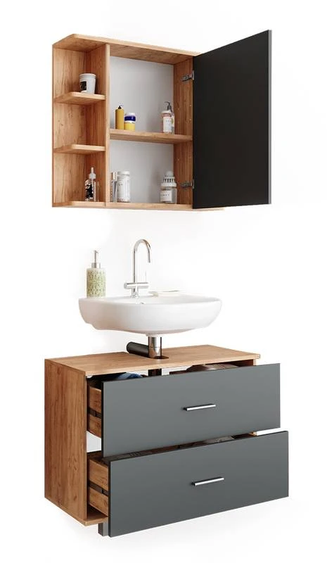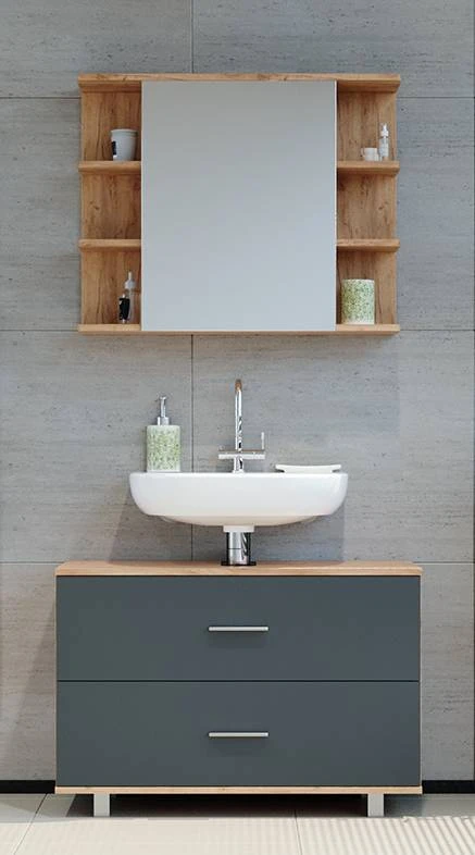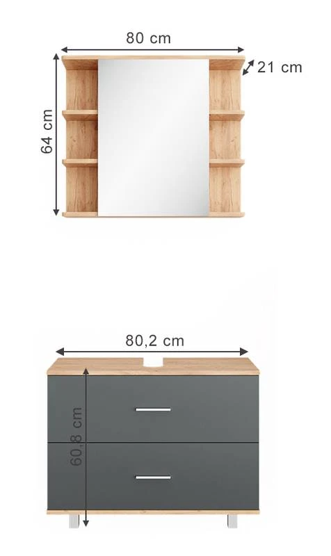 - Contenu de la livraison : • 1x armoire de toilette• 1x meuble sous-vasqueDécoration non incluse