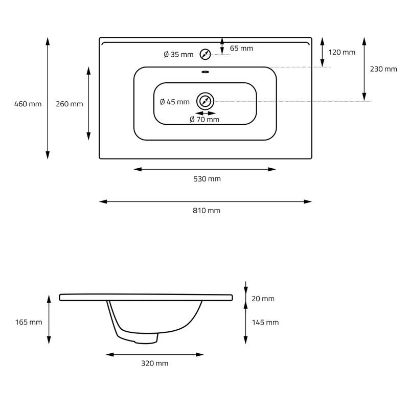 - Contenu de la livraison : 1 x lavabo encastré, 1 x garniture de vidage pour lavabo avec trop-plein
