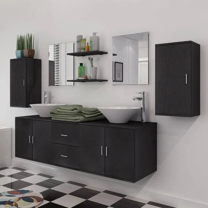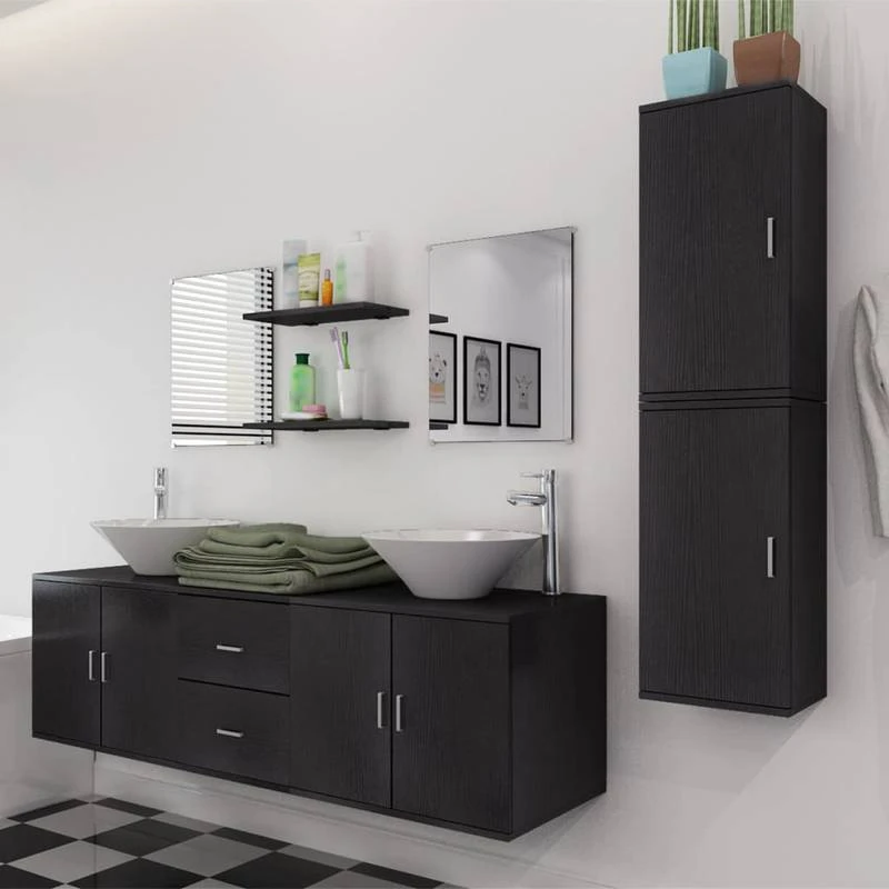 - Contenu de la livraison : Ensemble de meubles de salle de bain 150 x 130 cm Noir