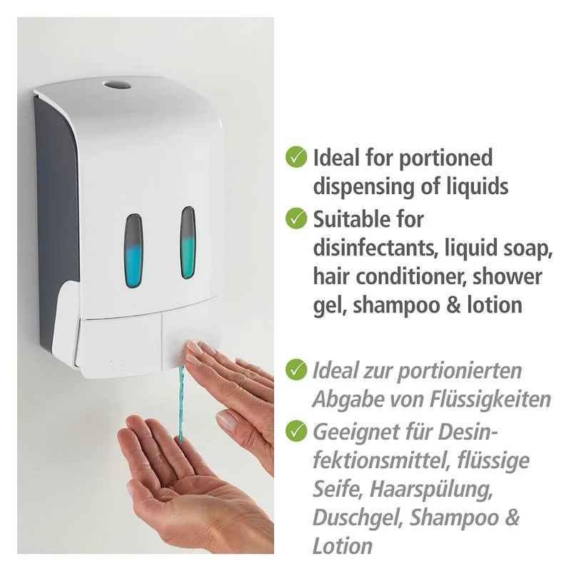- Contenu de la livraison : Distributeur de savon et de désinfectant, fixation adhésive, vis et chevilles