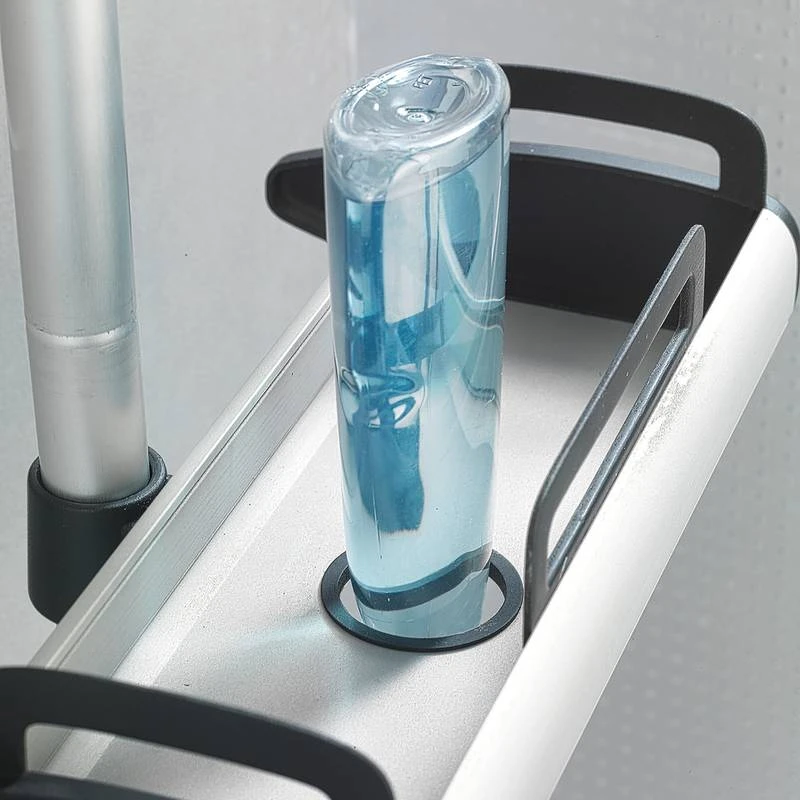 - Contenu de la livraison : Barre télescopique, 3 tablettes avec crochets, 1 miroir anti-buée
