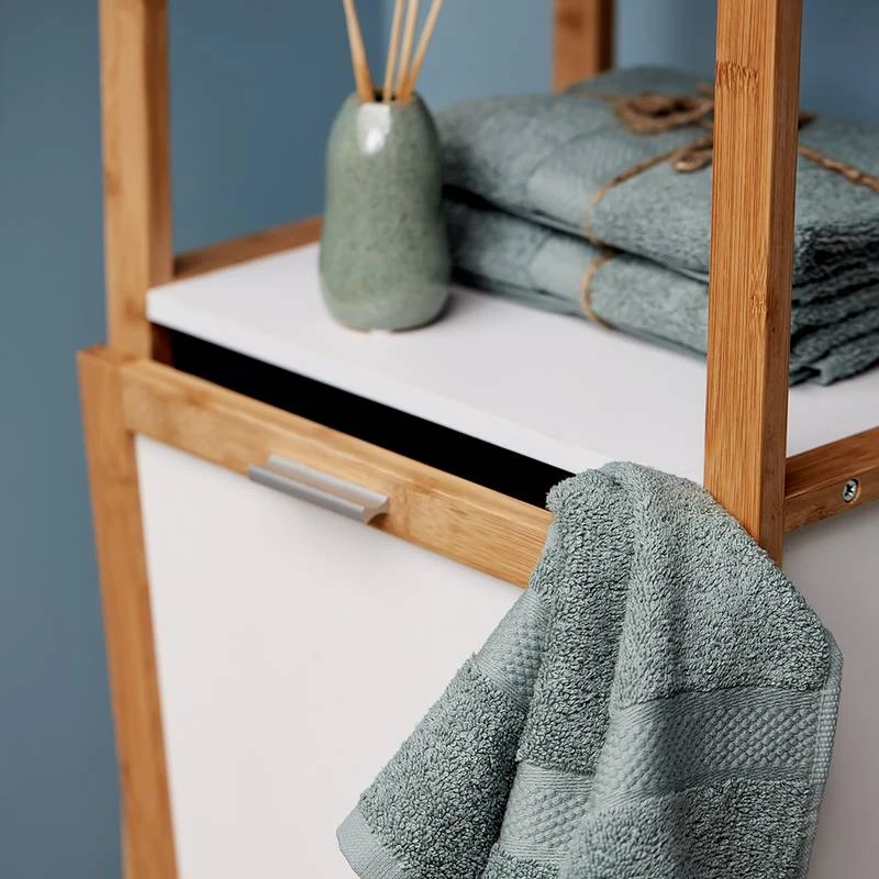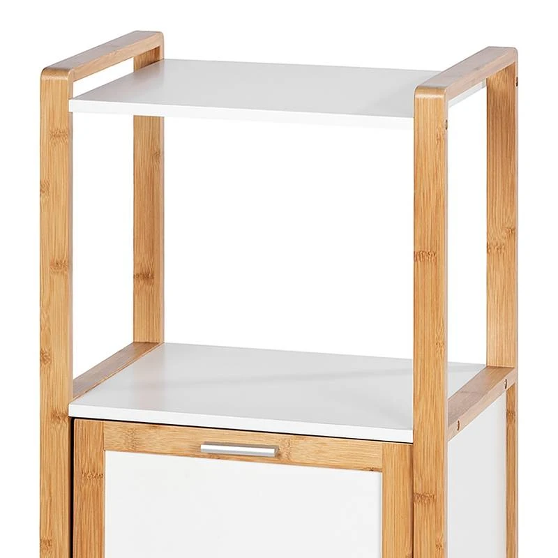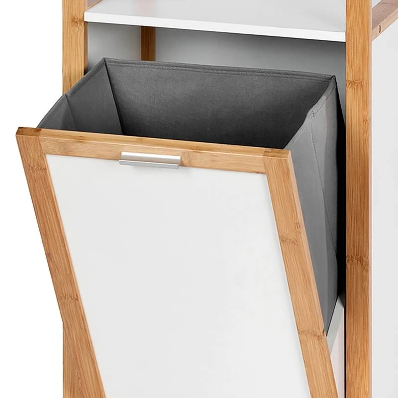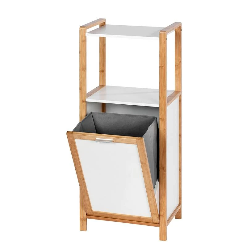 - Étagère moderne avec 2 tablettes et un bac à linge rabattable pour beaucoup d’espace de rangement