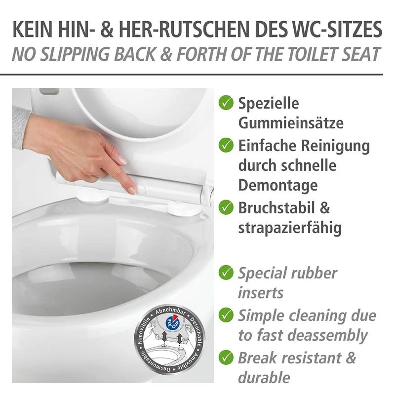 - Contenu de la livraison : Siège WC, éléments de fixation